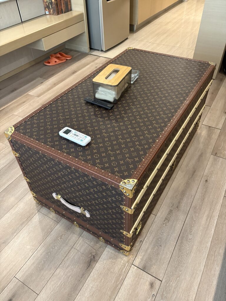 で、笑ったのがこれ。ソファ前のローテーブルが超巨大なヴィトンのスーツケース。もちろんニセモノ。この堂々とインチキ全開で攻めてくる、中国のこの感じ好きなんだよな〜。しかも、もしこれが本物だったとしても下品なオーラ全開になるし、金持ちこんなことしねえし、喜ばねえだろ! いや〜、ルイヴィトン=富裕層みたいな貧乏人の発想、自分が育った江東区の貧民街に通じるところがあってなんか嬉しいな〜。江東区の近所のジジイとかもよく言ってたなー、「俺はアレだよ、ビトンだよ、ビトン。アレしか買わねえから」