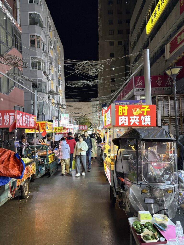 青島のローカルホットスポット=台東夜市。青島出身の友達に「観光地とか行きたくないから、地元の人たちがよく行く薄汚くて盛り上がってるところ教えて」って聞いたら何人かから即答で「台東夜市行け!」と言われたので行ってきた。メイン通りにはきれいな屋台がずらっと大量に並んでて壮観だったけど、実は面白いのは裏通り。裏路地とかでもドサクサに紛れて商売しまくってる屋台が大量にあって、このあたりがいい。生ビールの屋台もたくさんあった。