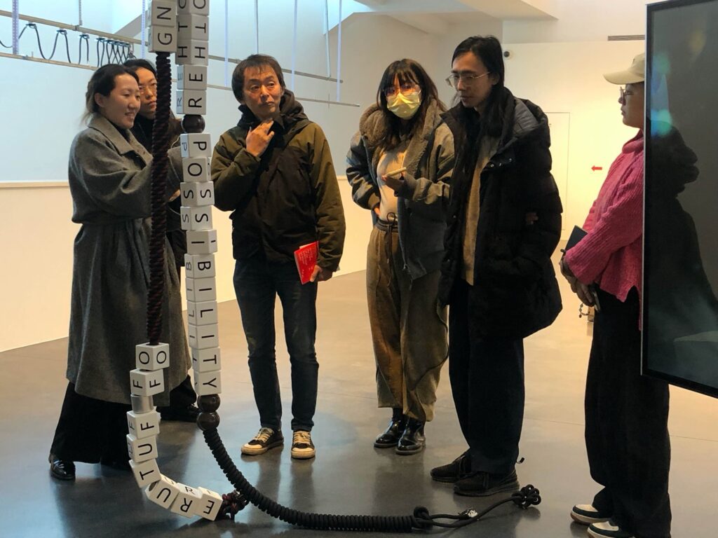 さっそく、美術館の職員さんたちが寄ってたかって館内の展示を案内してくれる。しまった、昨日飲みすぎて二日酔いがひどい。よっしゃ、こうなったらイチかバチかだ。芸術を見るぞ〜!!