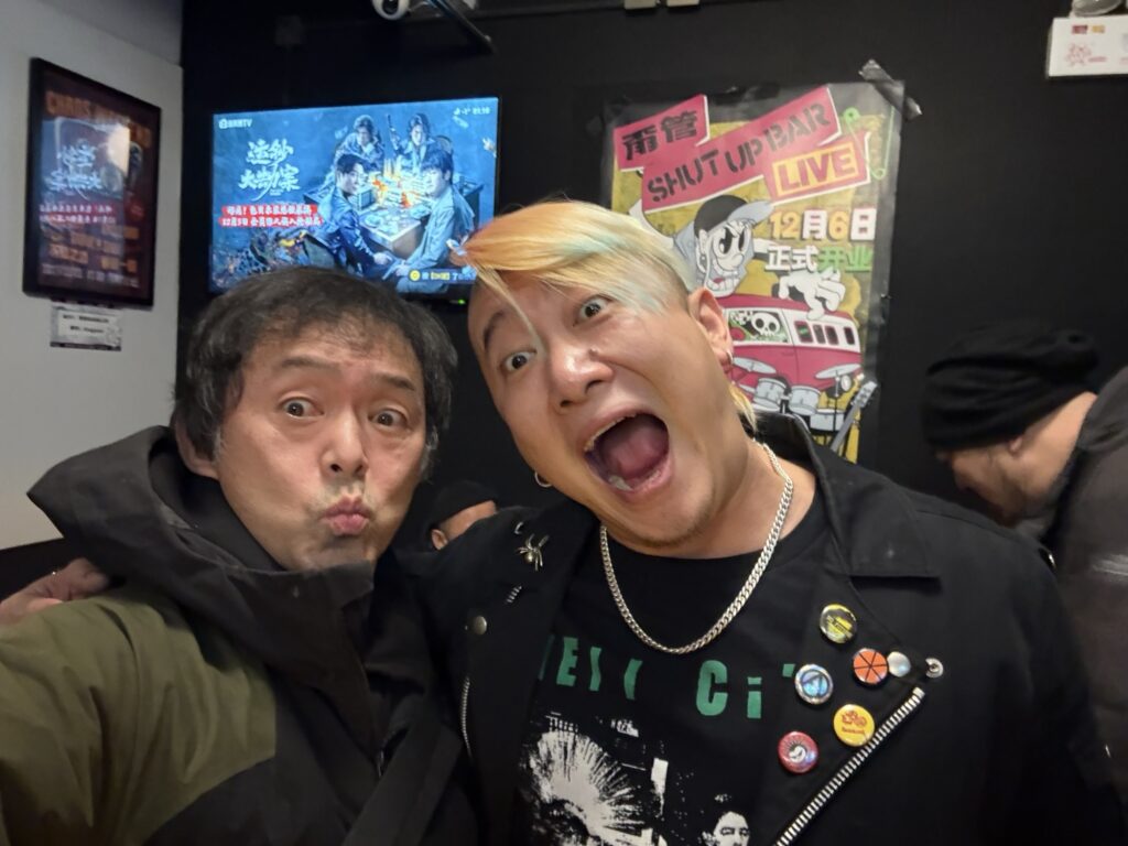 そんな飛び出しくん、実は10年来の友達。北京のFLYXというバンドのメンバーとして台湾のイベントに出た時、たまたま自分も遊びに行ってて仲良くなったのがキッカケ。実は去年には高円寺にも遊びに来てるし、こういう無闇に国境を跨いで遊び歩いてる人は重要だ〜